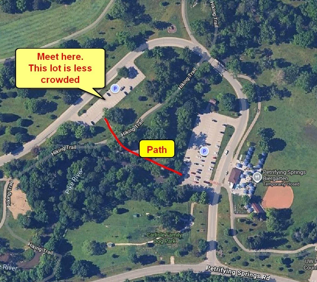 Start Location: Petrifying Springs Park, 4300 Petrifying Springs Road, Kenosha, WI. NEW THIS YEAR - to avoid crowding we will meet at the SECOND PARKING LOT AFTER YOU ENTER THE PARK FROM THE SOUTH rather than the first parking lot (see map below). Enter the park from Petrifying Springs Road (County Rd JR) which runs on the south side of the park. After entering the park, drive past the first parking lot, continue on the park road and the second lot will be just around the left bend in the road.